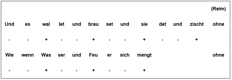 Silbe) (-) und einer Hebung (betonte Silbe) (+). Jambus: (- +)