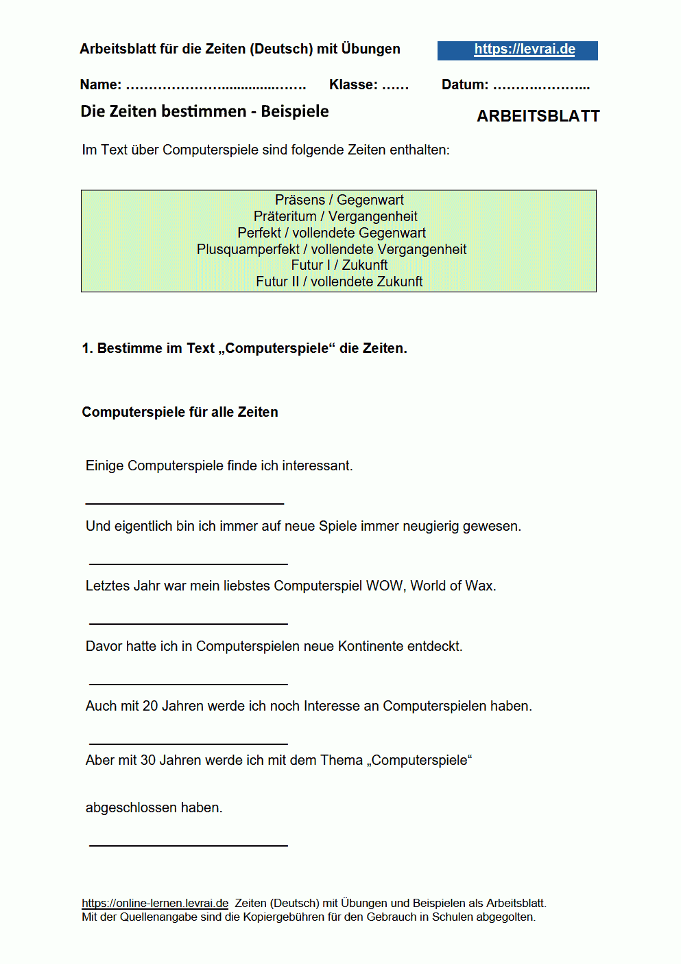 21 Zeiten bestimmen PDF Arbeitsblatt