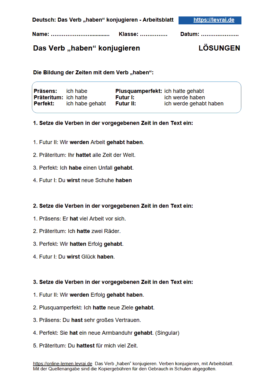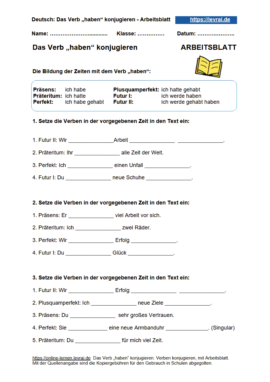 die Konjugation des Verbs „haben“ in allen Zeitformen mit Arbeitsblättern und