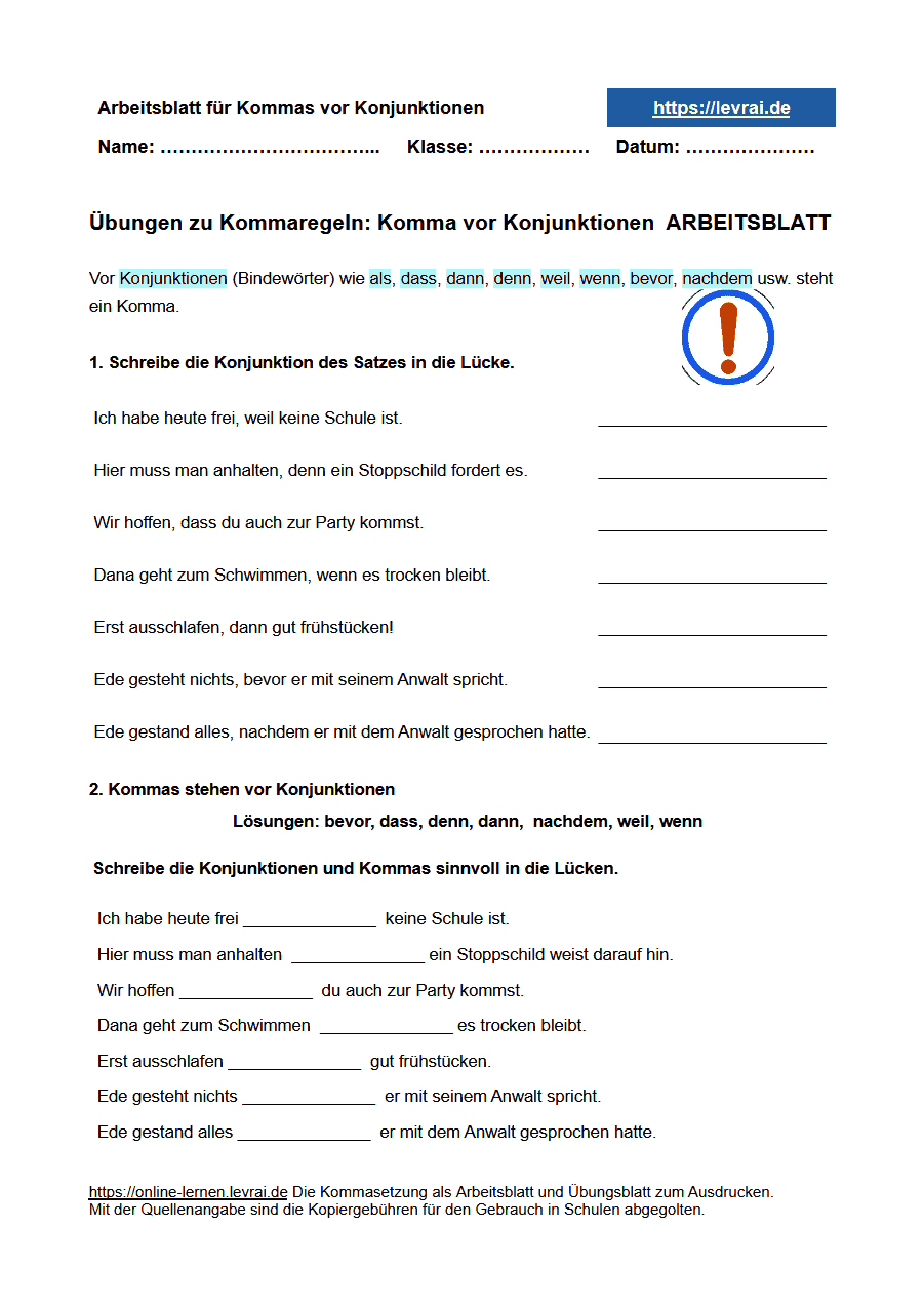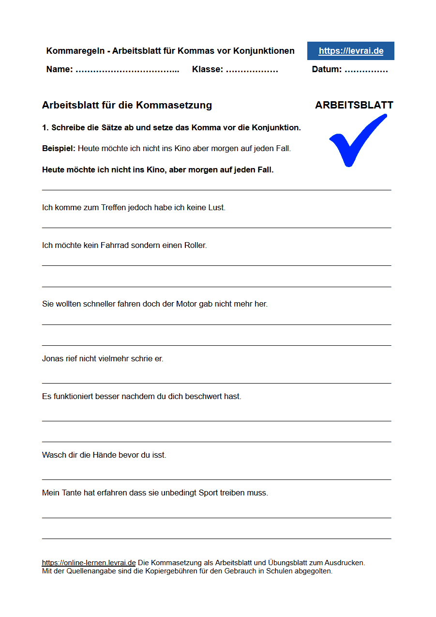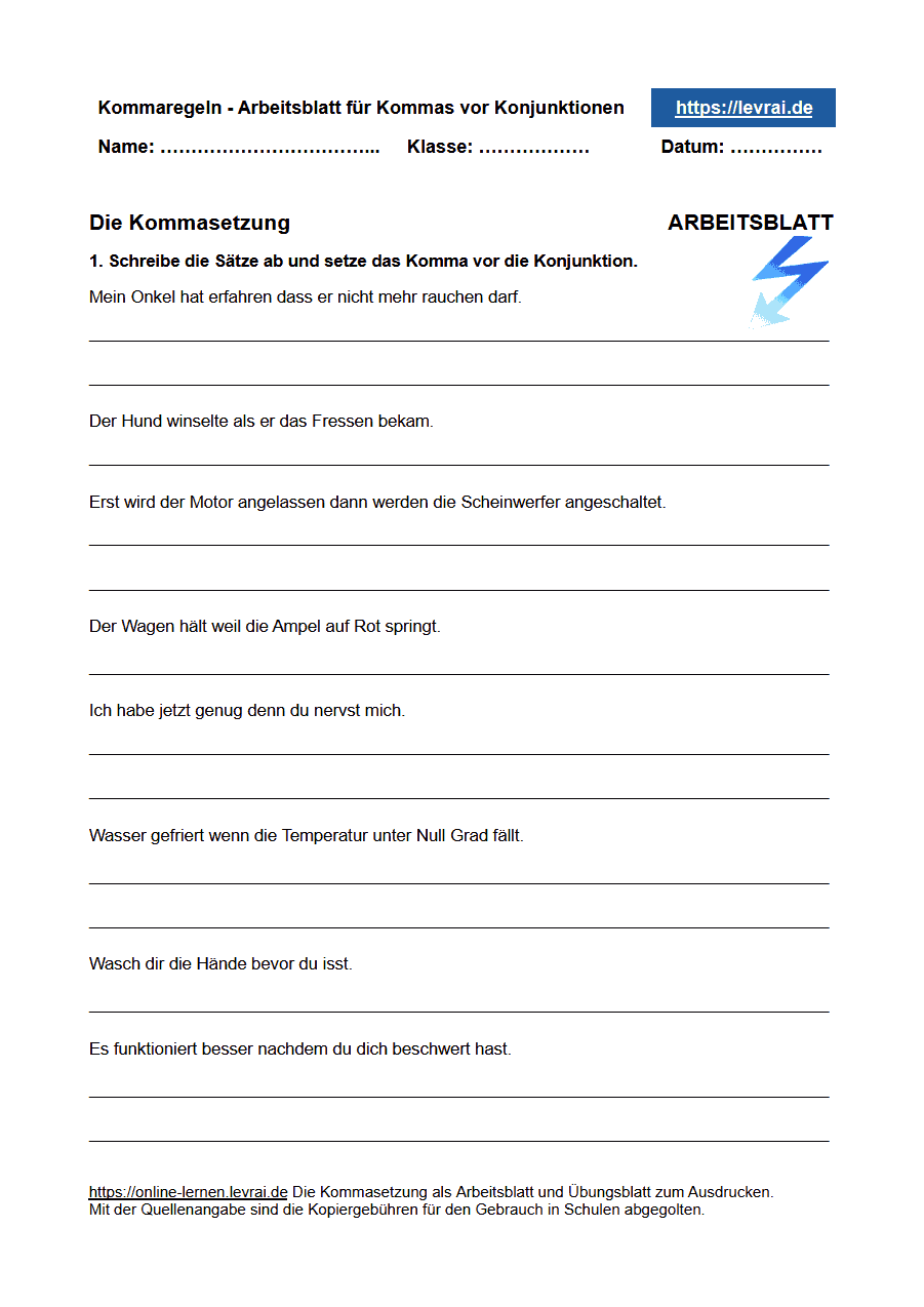 1 Kommaregeln mit Beispielen zum Ausdrucken oder als Download