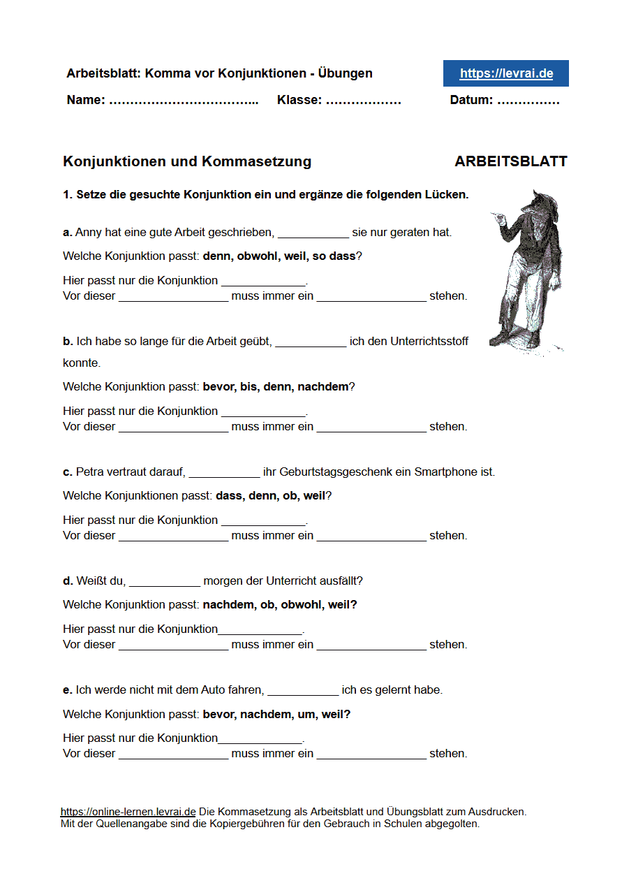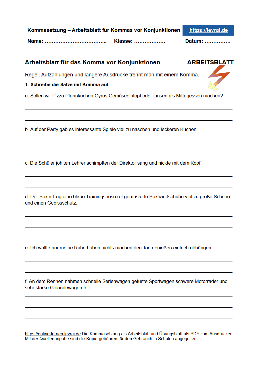 Diese Seite bietet PDF Arbeitsblätter zur Zeichensetzung und Kommasetzung mit Übungen, um die Kommasetzung zu prüfen.