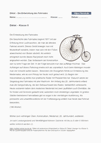 Diktat für Klasse 8 als PDF-Arbeitsblatt.