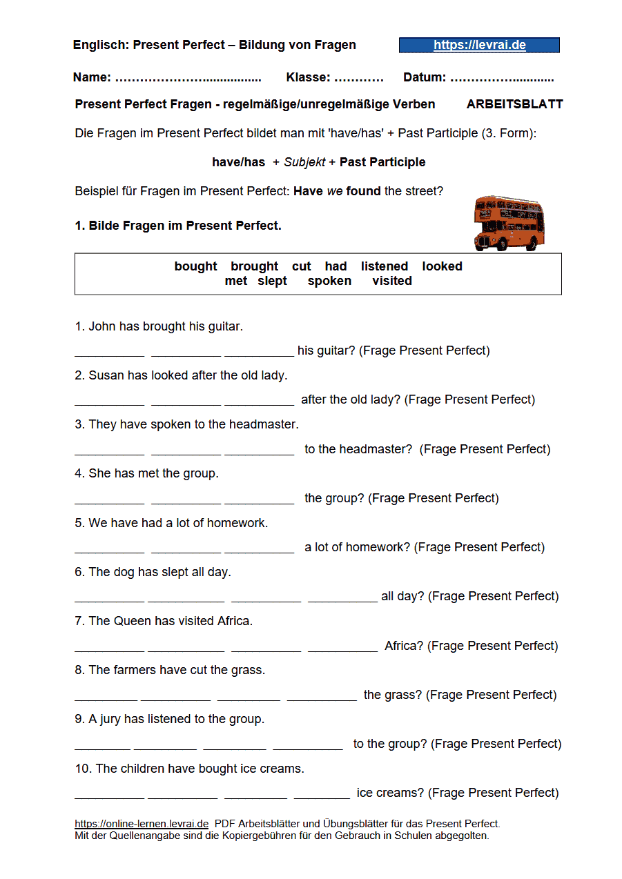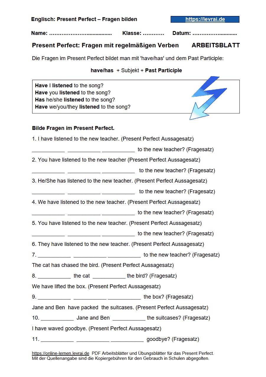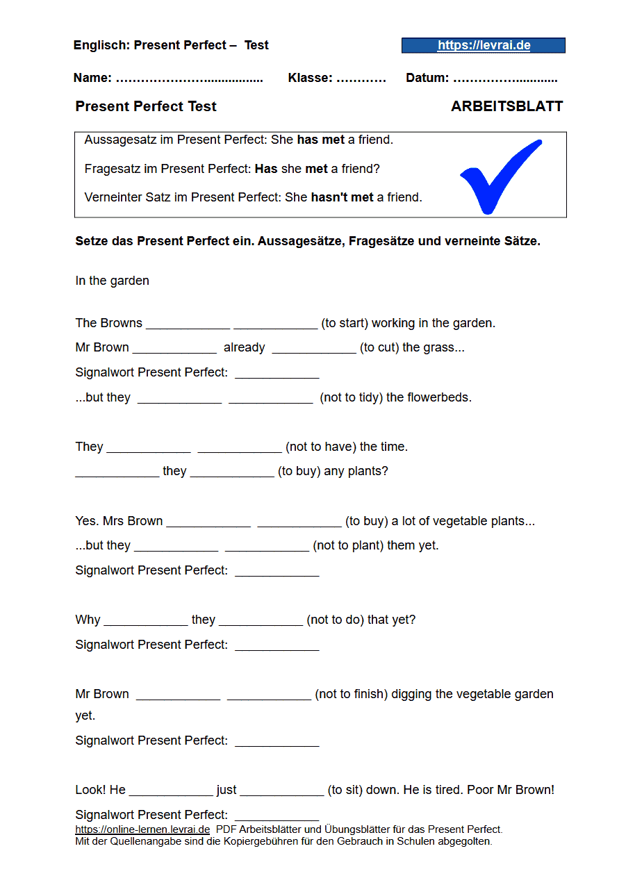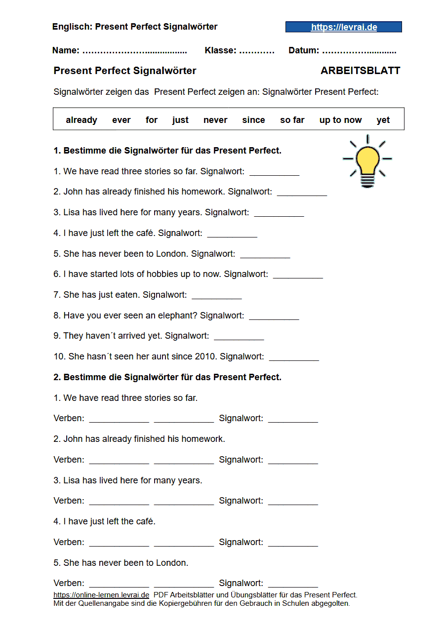 5 Arbeitsblätter Present Perfect Lösungen PDF
