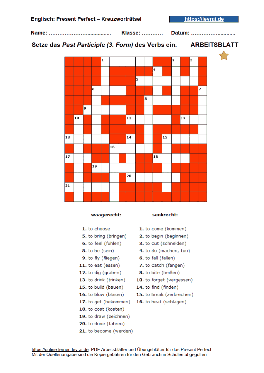 15 Arbeitsblätter Present Perfect unregelmäßige Verben Lösungen
