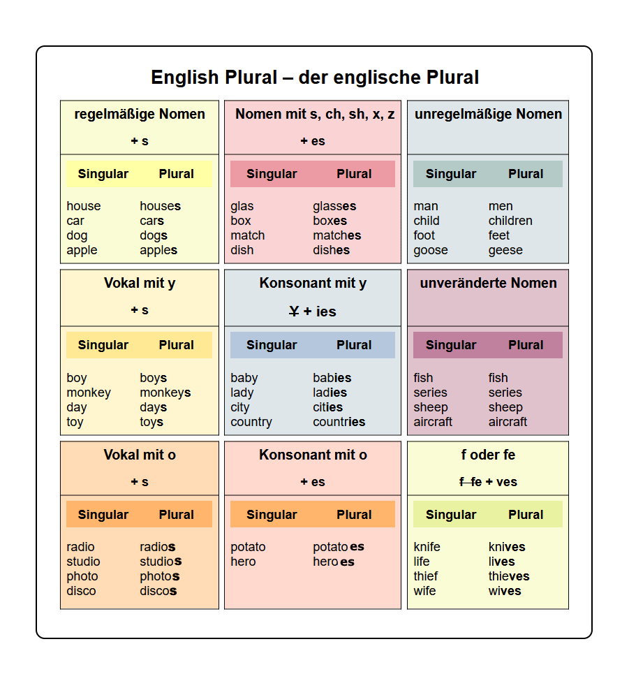 Der Plural, Englisch, Übungen, Regeln und Ausnahmen