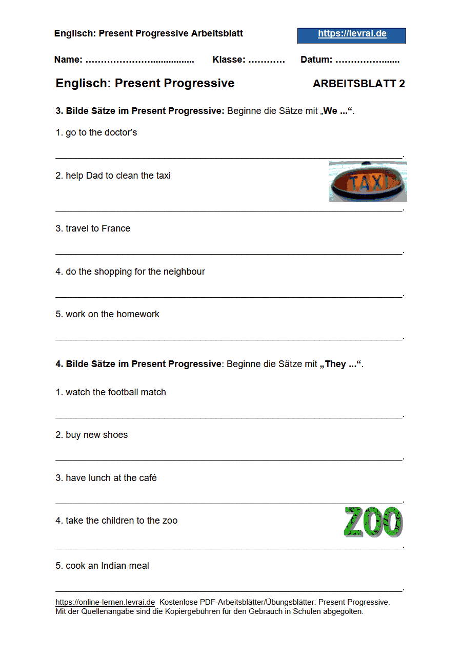 Arbeitsblatt 2 für das Present Progressive